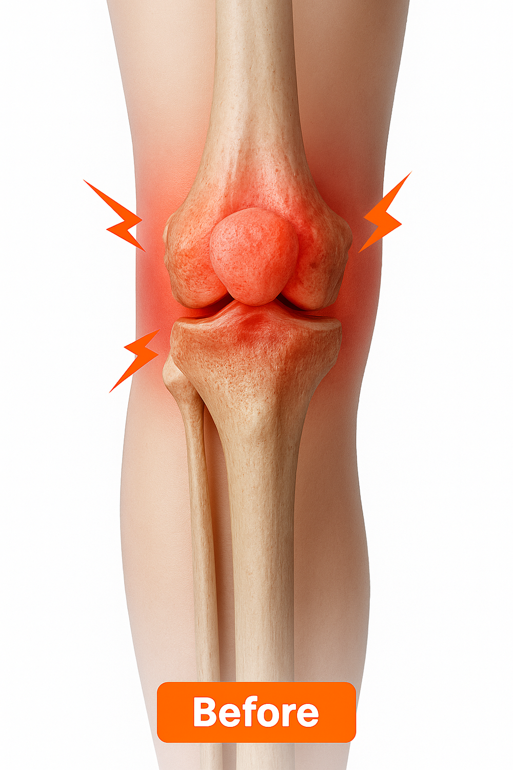 When you sit all day, stand for hours, or simply age, the discs in your knees begin to compress and dehydrate. This creates a cycle where: