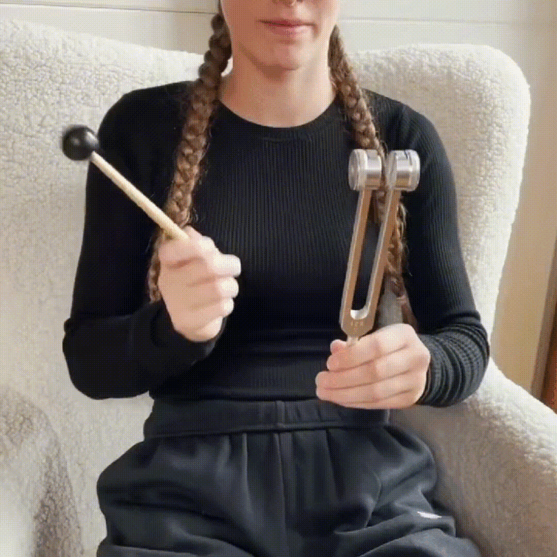 1. 🔔 Activate: Gently tap the tuning fork with the included mallet to start the vibration.